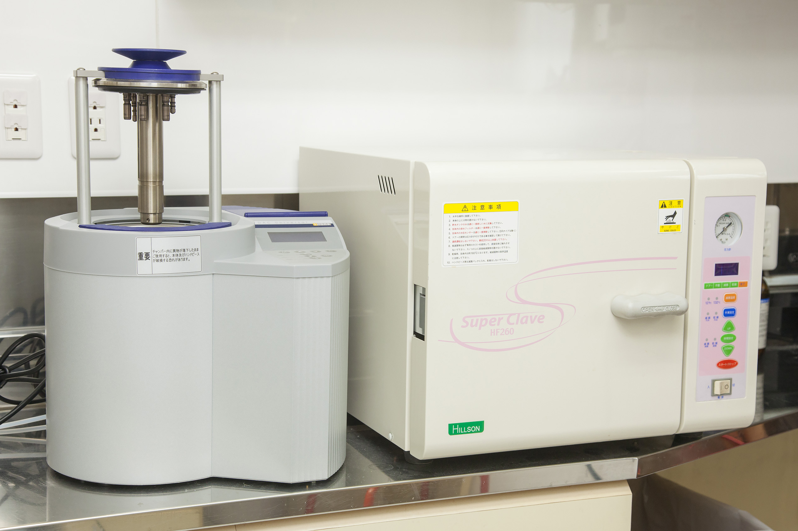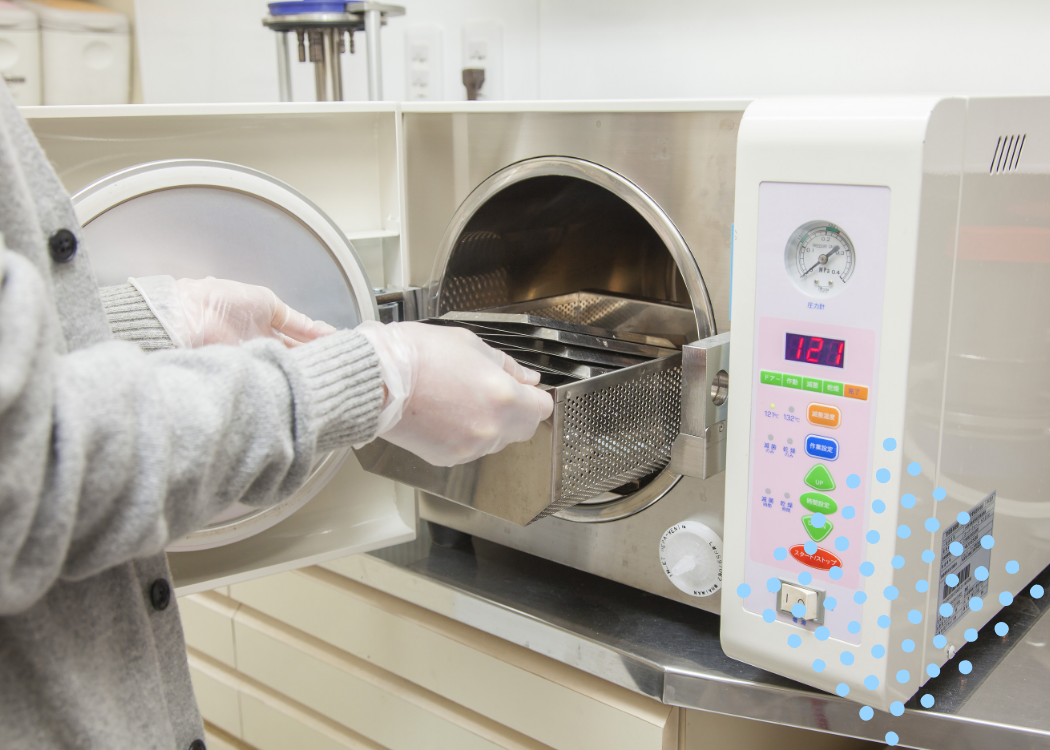 治療を受けられるような環境を整えています口内には細菌がたくさんおり、器具にはだ液や血液なども付着するため、衛生管理はとても重要になります。そこで当院は治療器具を洗浄した後に高圧蒸気滅菌器で処理をし、いつも清潔な状態で使えるようにしています。自分自身が治療を受ける立場であっても気兼ねなく処置に臨める環境を整えるべく、スタッフ全員が衛生管理を心がけ、清潔な環境維持に努めています。