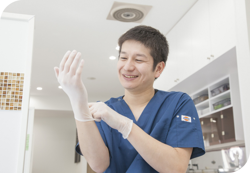 コミュニケーションを取りながら治療を行います当院は、できる限り痛みを抑えた治療のご提供を心がけています。例えば、注射の前には歯茎に表面麻酔を塗布し、電動麻酔器で一定のスピードを保ちながら薬液を注入することで、麻酔自体の刺激を軽減させています。さらに麻酔液は人肌程度に温めておくことで、少しでも不快感を減らせるようにしました。
