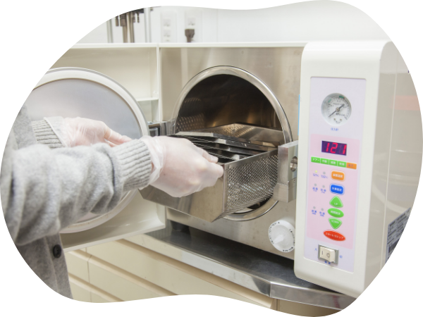 歯科医療の現場は、非常に感染リスクの高い現場です。特に感染力の強いB型肝炎・HIVなどのウィルスへの対策はとても重要です。当院では、スタッフ全員の意識の向上に努めており、最高水準の衛生設備を整えており、使い捨てが可能な器具については極力使い捨てています。滅菌についても、ただ滅菌すれば良いというわけではありません。滅菌器は細菌やウィルスを死滅させますが、死滅する前に細菌たちが吐き出した毒素や汚れを落とすことはできません。まずは汚れを綺麗に落として消毒してから滅菌する必要があります。